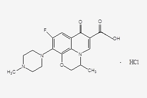 Chemical name: (±)-9-Fluoro-2,3-dihydro-3-methyl-10-(4-methyl-1-piperazinyl)-7-oxo-7H-pyrido[1,2,3-de]-1,4-benzoxazine-6-carboxylic acid hydrochloride
